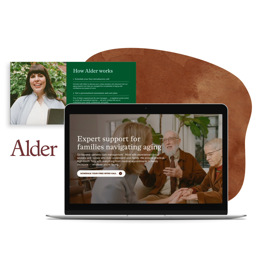 Alder is an emerging brand redefining aging care for families. I provided the SEO-aligned and brand-forward copy for every page on its first-ever website.